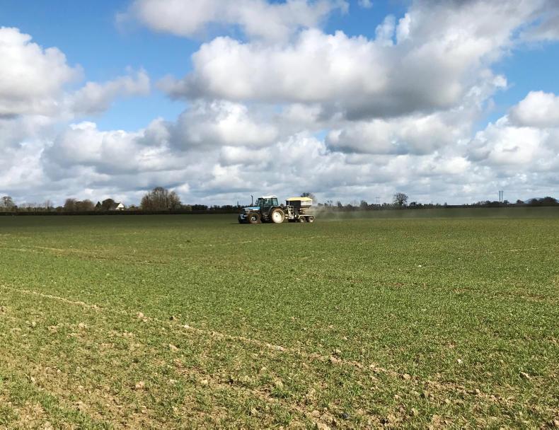 All of the winter fertiliser application is up to date. Winter wheat and barley received between 300kg and 450kg/ha of 0.10.20 based on soil tests and 70kg/ha to 80kg/ha of urea+S so far. Despite the slow growth, they have responded well to it.