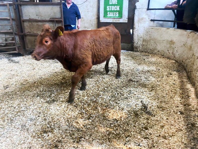 This March 2021-born Shorthorn bull weighed 515kg and sold for €1,380 (€2.68/kg).
