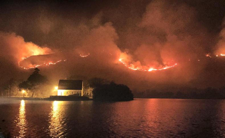 A raging wildfire in the picturesque Gougane Barra valley in Co Cork over the weekend brought illegal burning on upland areas sharply into focus.