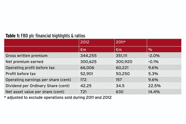This year’s robust results further strengthened FBD’s balance sheet and solvency ratios. Its net asset value increased by 14.4% to 721 cent per share and its solvency level by 73.5%, from 66% in 2011.