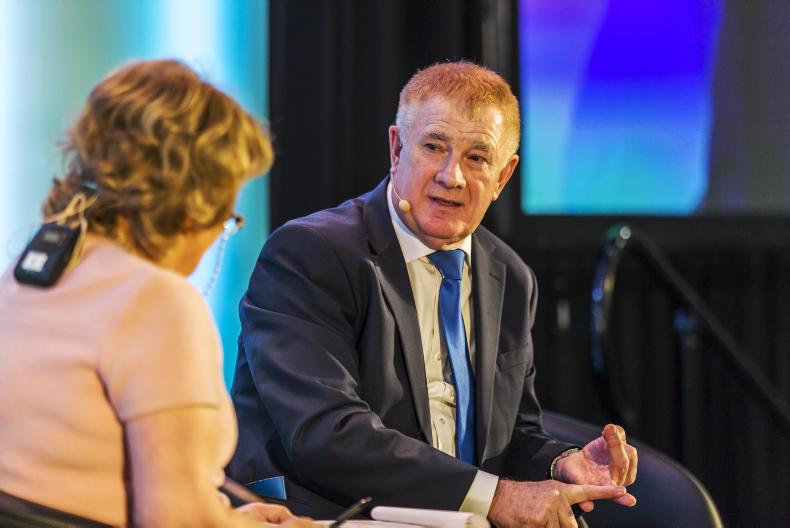 John Concannon (CEO JFC) speaks with Mairead Lavery at the Farmers Journal Agri Careers Expo in the RDS, Dublin. \ Philip Doyle