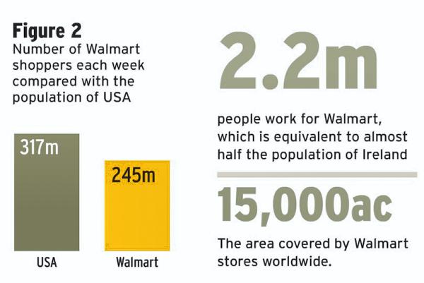 Walmart, the US-based retail giant, is the second largest company in the world, according to the Fortune 500 list. Shell Oil is only marginally bigger. Walmart is larger than many countries with a turnover of $469bn. Every week, 245 million people push trolleys down their aisles. That’s just over one third of the population of Europe every week. And it’s profitable. In 2012, they made $17bn, making it the 16th most profitable business in the world, according to Fortune.