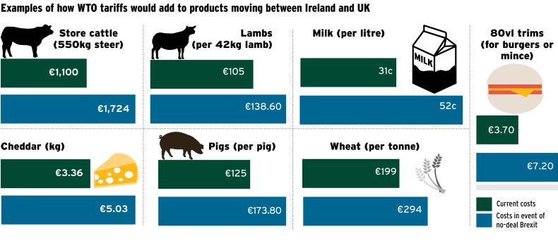 If the worst happens, trade with Britain and the north would be subject to World Trade Organisation (WTO) tariffs. These are particularly high on agricultural products and are calculated as a rate per kilo or a rate per kilo plus a percentage of the value of the product.