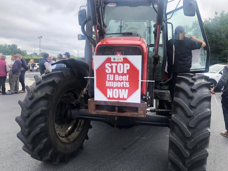 Beef Plan members protest outside Liffey Meats Ballinasloe.