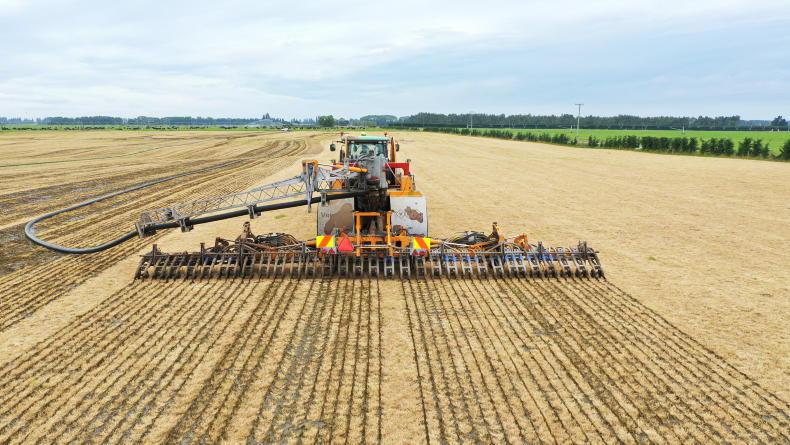Injecting slurry near Hinds in South Canterbury, New Zealand.