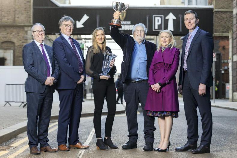 At Tirlán Quality Grain Quality Awards ceremony at the Guinness Storehouse in Dublin on Wednesday 12 February were: (L to R) Tirlán CEO Seán Molloy, chairperson John Murphy, Margaret Murphy, overall winner Art Murphy, Tirlán’s chief agribusiness officer Ailish Byrne and head of grains John Kealy. \ Finbarr O'Rourke