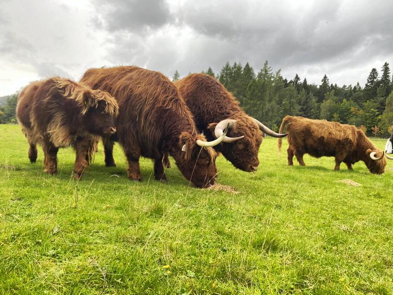 The cattle are all outwintered (bar the weanlings) and supplemented with homegrown grass silage in the fields. The breed is in its native country here and the thick shaggy coats are ample protection from the elements.
