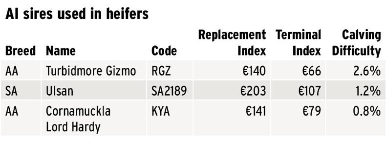 It is planned to AI for four to five weeks and then turn out three stock bulls with the herd. The bulls are two Limousins for the mature cows and one Aberdeen Angus for the heifers and some second-calving cows.