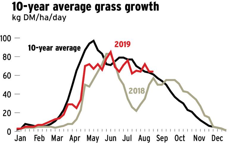 Carefully manging grazing in these wet conditions is very important – we are at the time of the year when we need to be building the farm cover, not depleting it. Building grass should start now and climb towards a peak cover of around 1,100kg DM/ha (farm stocked at 2.5LU/ha) in mid-September.