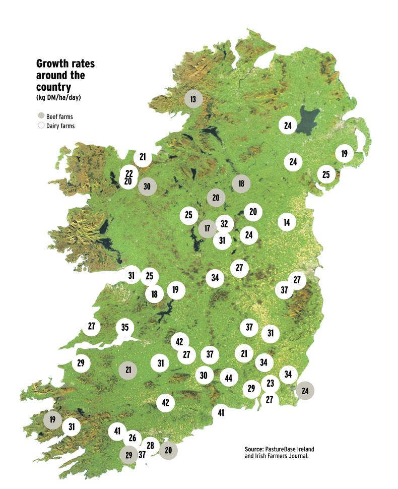 This week’s national average growth rate is 21kg DM/ha/day. Crossing the 20kg mark does represent a slight increase but growth is still slow to really kick into life. Cold temperatures are keeping a lid on things for now, with ground frost and cold north and easterly winds present for most of the last seven days.