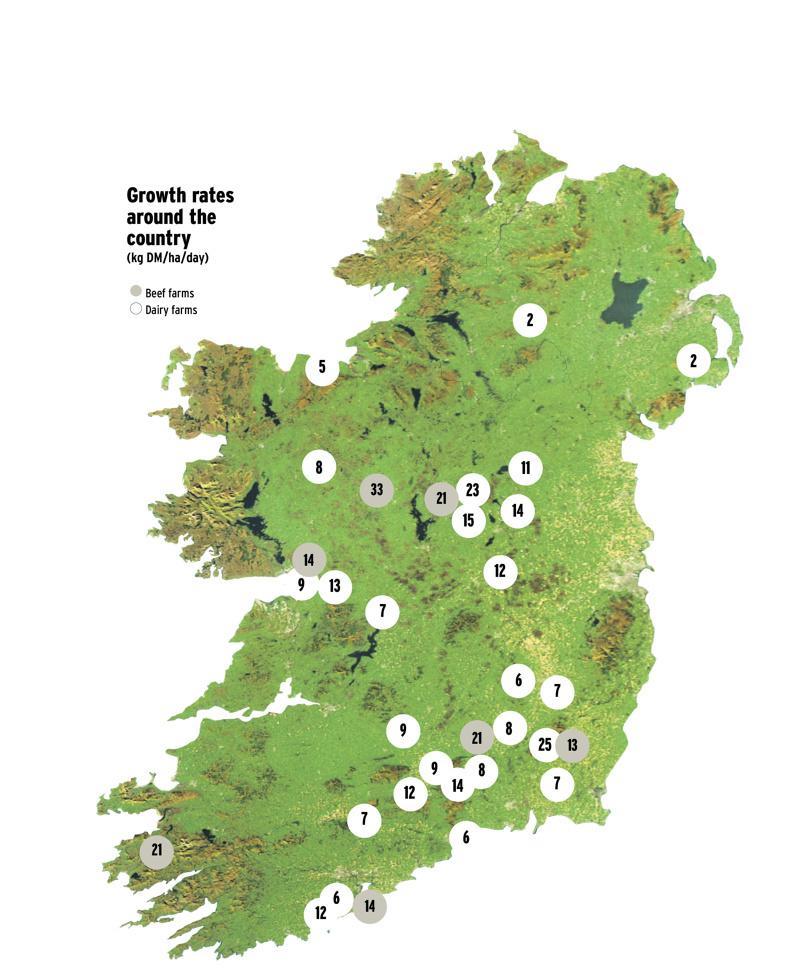 This means that grass is back growing again. If it hasn’t gone out already, urea needs to go out. There’s a 10:1 response on every kilogramme of nitrogen spread in the springtime. While the 20kg growth figure might seem impressive and reassuring, chances are that if you haven’t got slurry or nitrogen out yet, or cattle haven’t yet got out to graze, your own figure will be well back on this.