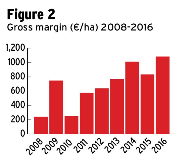 2016 gross margin: €1,083/ha.