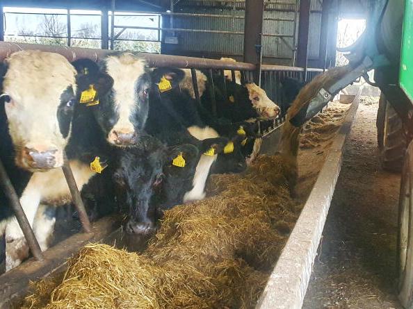 The average DM of the baled silage in the yard is 27% meaning they need almost 17kg of silage fresh weight to meet their daily needs (4.5kgDM ÷ 0.27 = 16.66kg).