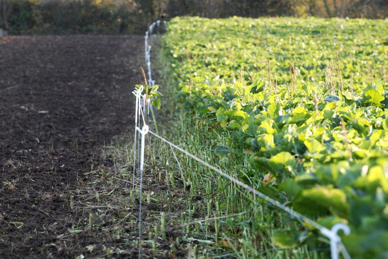 It’s a good idea to place a line of bales of silage in the field at sowing time and then feeders can be moved with a fence at feeding time in winter. Animals also need access to 1ha/LU of a lie-back area in order to meet cross-compliance requirements.