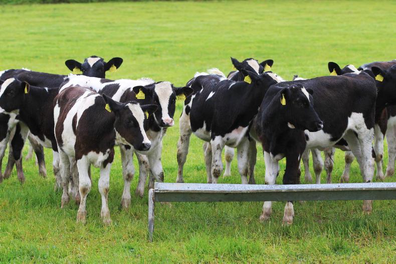 Once weaned, calves are turned out to grass in late April to early May and supplemented with 1kg of concentrate dry matter (DM) per head daily for two weeks. They then remain on a pasture-only diet until early September. Around this time they are (again) supplemented with 1kg of concentrate DM daily for six to eight weeks until housing. Calves should be grazing pasture covers of 1,200kg DM/ha (approximately 10cm in height). Although calves can graze independently to a post-grazing residual of 4.5cm to 5cm, a leader-follower rotational grazing system can also be carried out with older cattle. It is essential that attention to detail is given to parasitic infections when calves are at pasture. The three main parasites to be controlled are stomach worms, lungworms and liver fluke. Fresh dung samples (from 10 to 15 calves) should be collected approximately eight weeks after turnout and sent to a laboratory to determine the faecal egg count. Treatment for internal parasites of calves can be administered orally, by using a pour-on product or by injection, and is required when egg count is greater than 200 eggs per gram. Calves should be moved to another paddock four to seven days after treatment. The target ADG for a calf during their first grazing season is 0.80kg, with a liveweight target at housing of 230kg for February-born calves. For later-born (ie April/May) calves, the target liveweight at housing is 190kg.