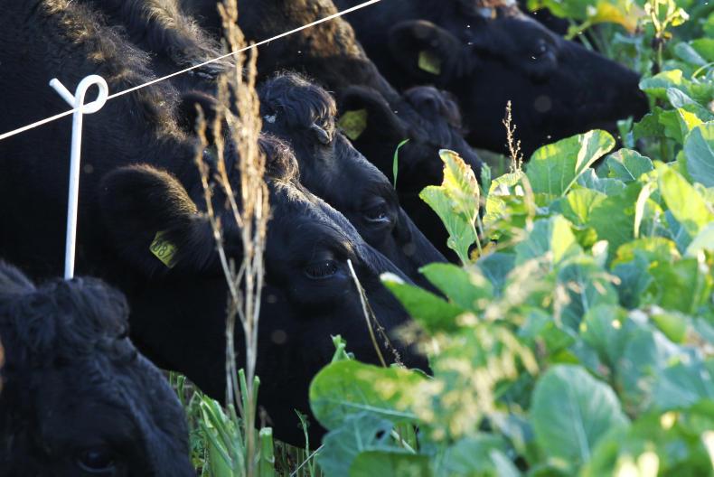 There are 50 cows and 60 weanlings currently grazing kale. In a bid to slow down the rate at which they are moving through the kale, one bale of silage is being fed/daily to each group.