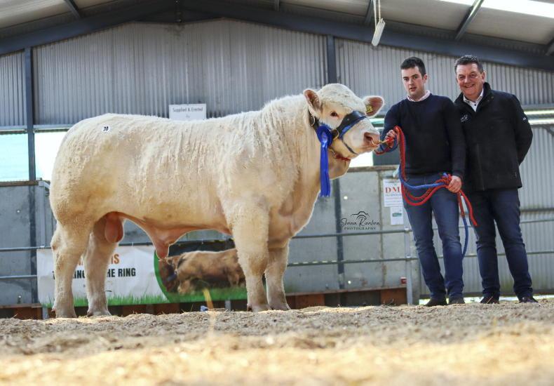 Reserve champion of the day for judge Basil Bothwell was Goldstar Schillaci ET for Martin Ryan and family, Thurles, Co Tipperary. Sired by Goldstar Hugo ET and from a Texan Gie dam, he boasted five stars for terminal indexes, docility, carcase weight and carcase conformation. The hammer fell at €4,300 for this January 2021-born bull.