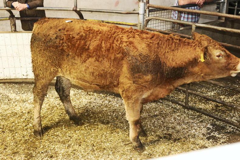 Top call went to an April 2022-born heifer weighing 635kg and selling for €2,450 (€3.86/kg). Another March 2022 born Limousin heifer weighing 710kg sold for €2,200 (€3.10/kg).