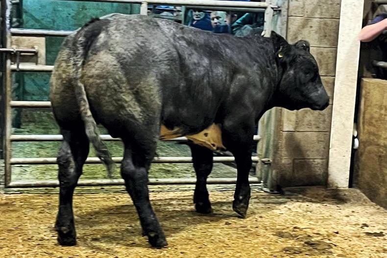 This Limousin-cross weanling bull was born 25 November 2021, weighed 460kg and sold for €1,320 (€2.87/kg).