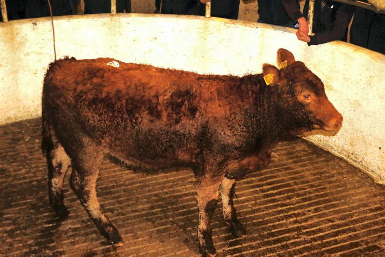 Top call on a price-per-kilo basis in the bulls was a five-month-old Charolais-cross weighing 235kg selling for €1,960 (€8.34/kg).