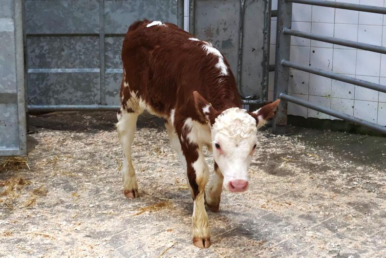 This one-month-old Hereford-cross heifer with a CBV of €57 weighed 46kg and sold for €190.