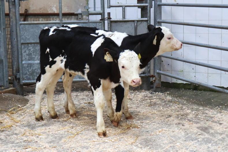 These six-week-old Friesian-cross bulls with CBVS of -€52 and -€24 weighed 47kg and sold for €140.