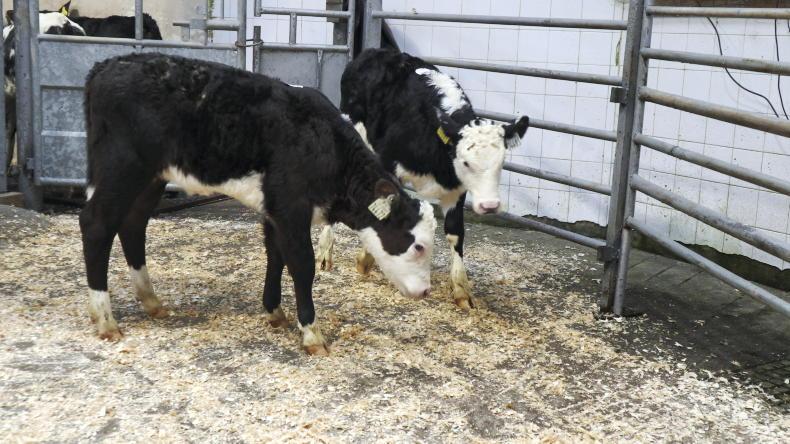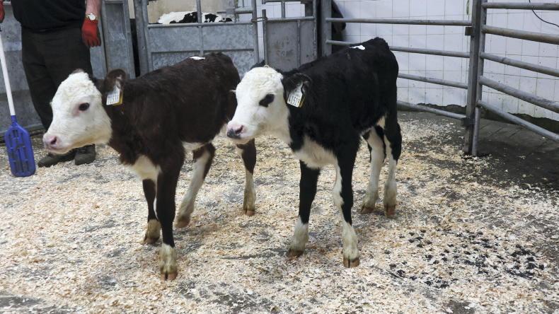 These three-week-old Hereford-cross heifers with CBVs of €118 and €124 weighed 44kg and sold for €215.