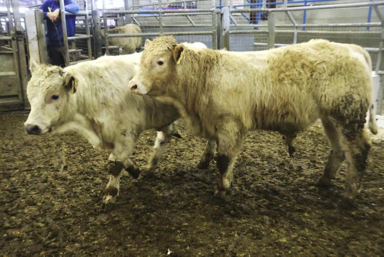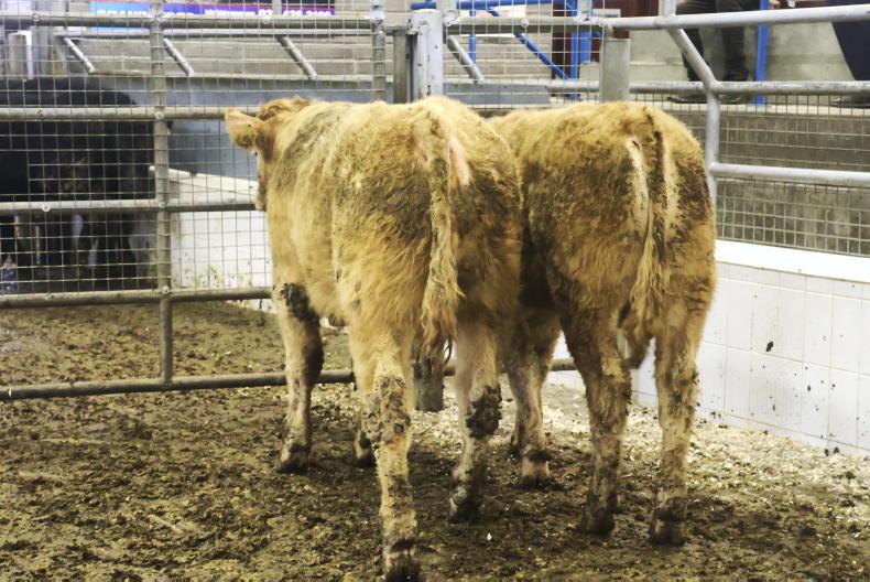 These March 2023-born Charolais-cross bulls weighed 385kg and sold for €1,190 (€3.09/kg).