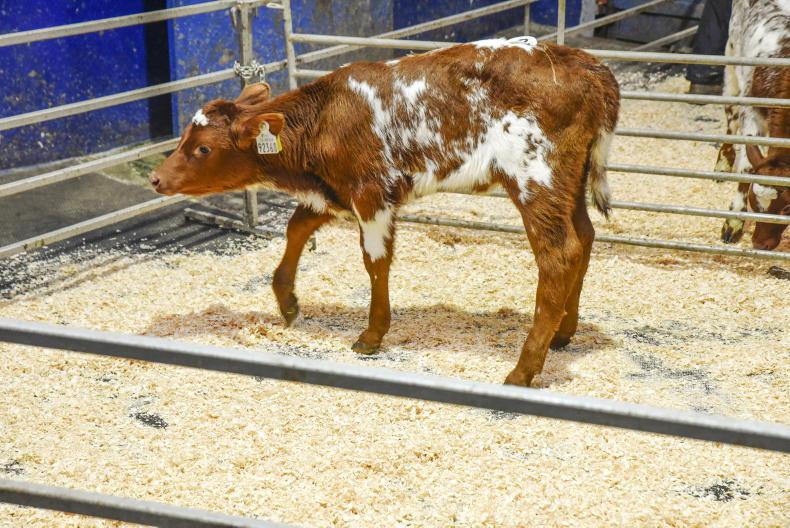 This three-week-old Shorthorn-cross bull calf weighed 45kg and sold for €140. \ David Ruffles