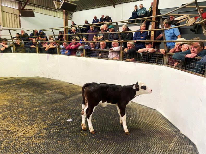 This four-week-old Hereford cross bull calf sold for €205.