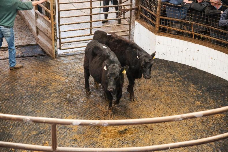 This pair of Limousin-cross store heifers born May 2023 and averaging 425kg sold for €1,800 (€4.24/kg).