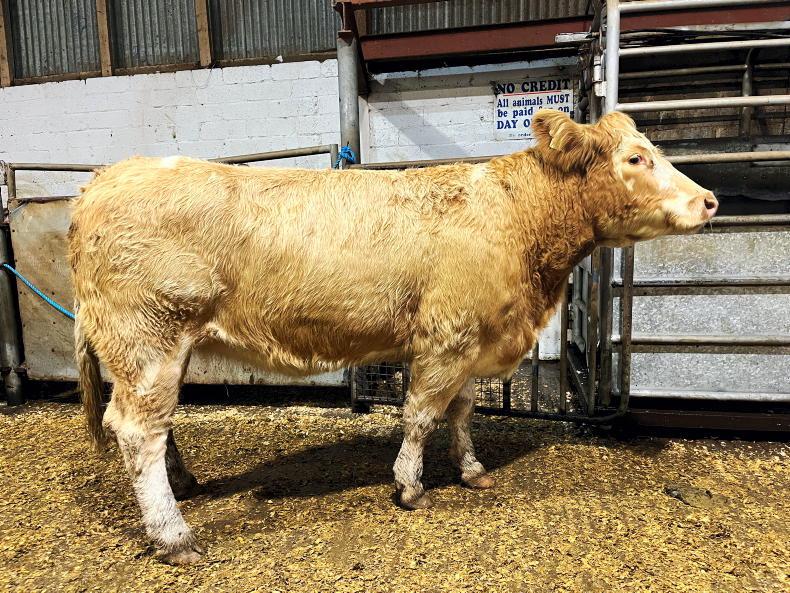 This Charolais-cross heifer born December 2023 and calving in March to a five-star Limousin stock bull sold for €4,950.