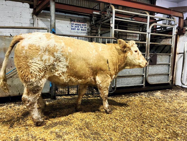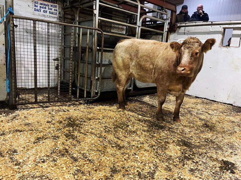 The next-top price was €5,750 for a striking August 2021 Limousin heifer with a roan flick and white belly, due in the first week of January 2026 to a Sympa-bred Limousin stock bull.