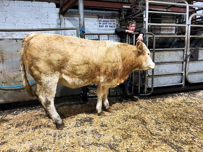 A Limousin-cross heifer due to calve in December to a Limousin stock bull sold for €4,650 while her comrade due at the end of December to the AI Limousin bull Powerful Proper sold for €4,500.