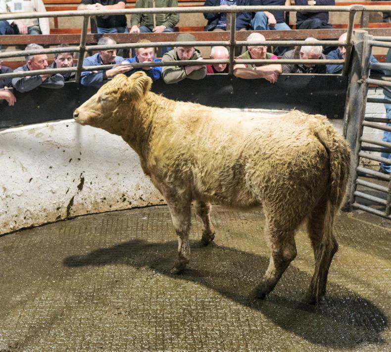 This January 2020 born Charolais dry cow weighed 790kg and sold for €1,930 (€2.44/kg) / Gerry Faughnan