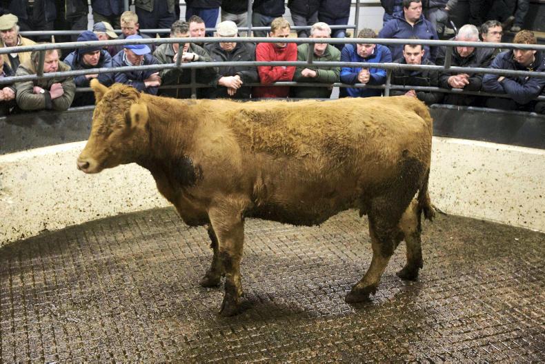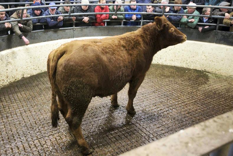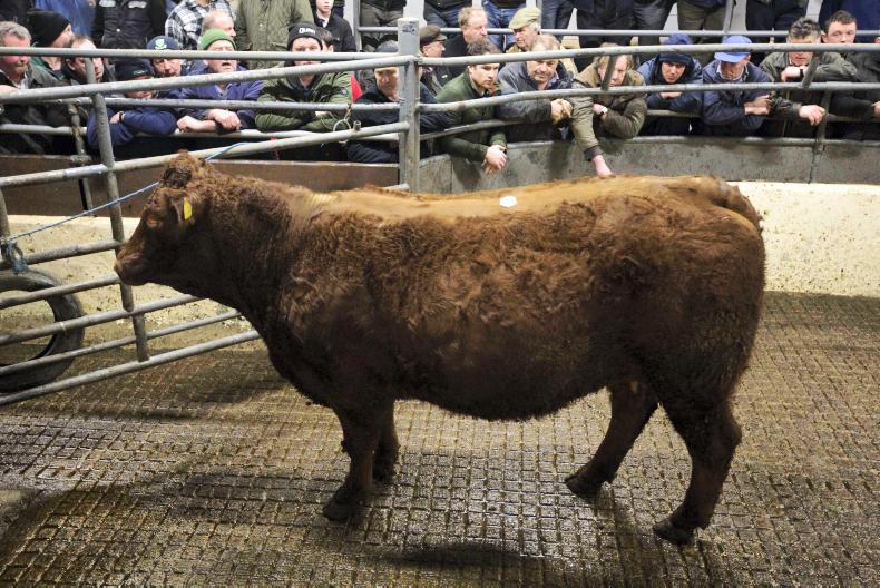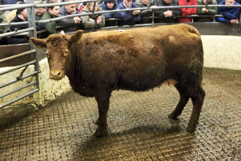 This Limousin-cross heifer, born 20 April 2016 and due on 23 January to a Limousin sire, sold for €1,910. \ Brian Farrell
