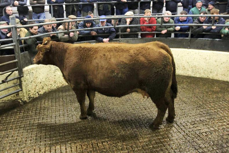 This Limousin-cross heifer, born 11 April 2016 and due to calve to an AI Limousin sire, sold for €1,710. \ Brian Farrell
