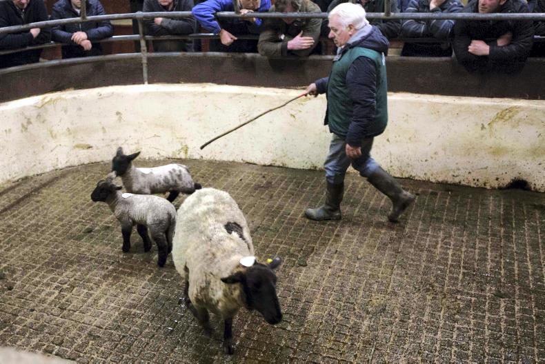 This Suffolk ewe and strong twin Suffolk lambs sold for €212. \ Brian Farrell
