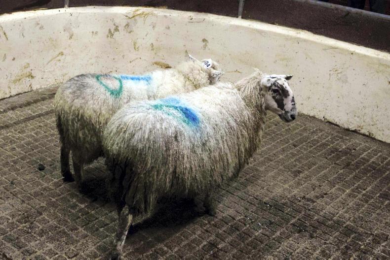 These two fleshed crossbred cull ewes sold for €102 each. \ Brian Farrell