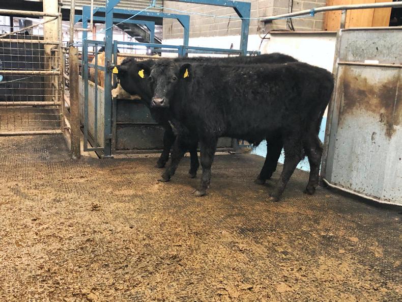 This pair of Limousin-cross heifers, born May and June 2018 and averaging 390kg, sold for €870 (€2.23/kg).