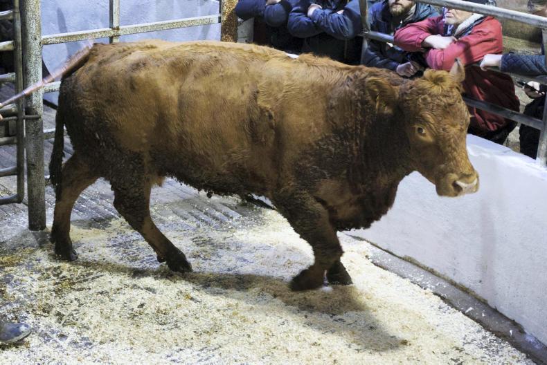 Good-quality R+ and U grading bulls weighing 300kg to 380kg sold on average from €2.20/kg to €2.40/kg, with plainer-quality lots selling back to €2/kg to €2.10/kg.