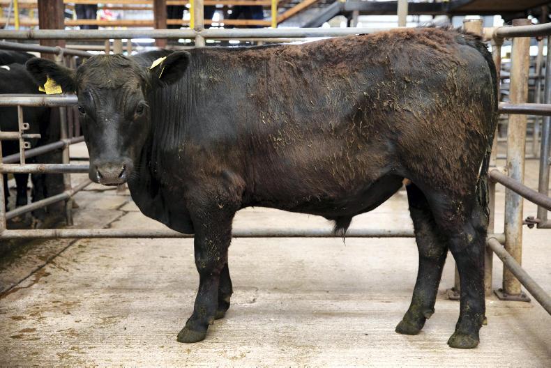 This Angus-Friesian-cross bullock, born December 2016 and weighing 697kg, sold for €1,185 (€1.70/kg).