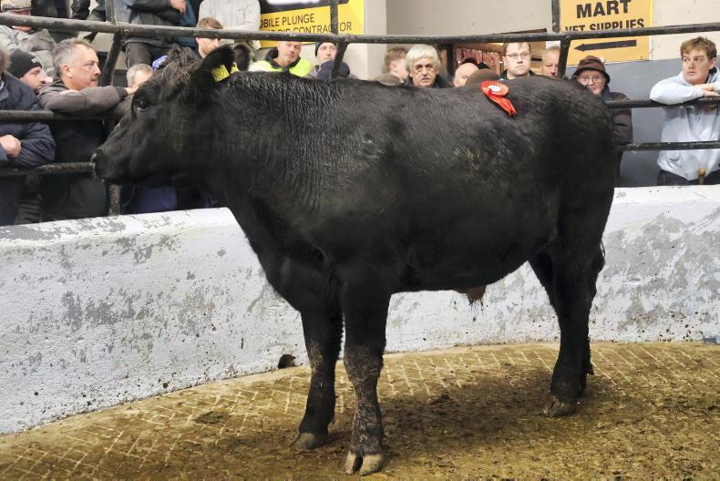 Making €8.72/kg, the heifer was purchased by local factory agent James Bowler.