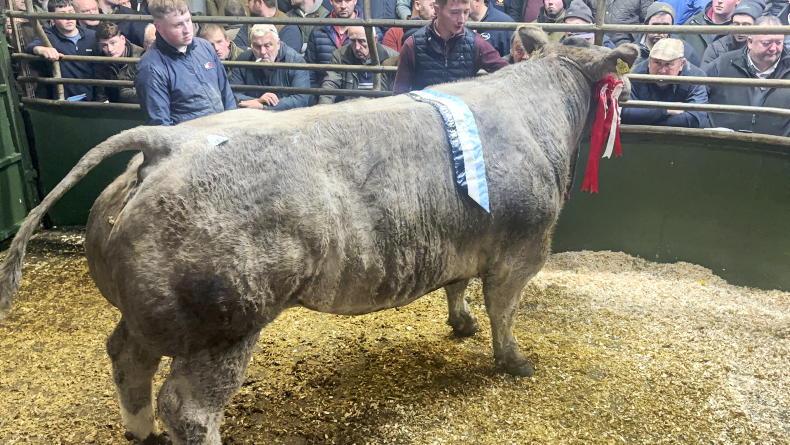 Top call in the bullock section went to an April 2024-born Belgian Blue bullock weighing 850kg and selling for €5,800 (€6.82/kg). Another April 2024-born Belgian Blue bullock weighing 755kg sold for €4,700.