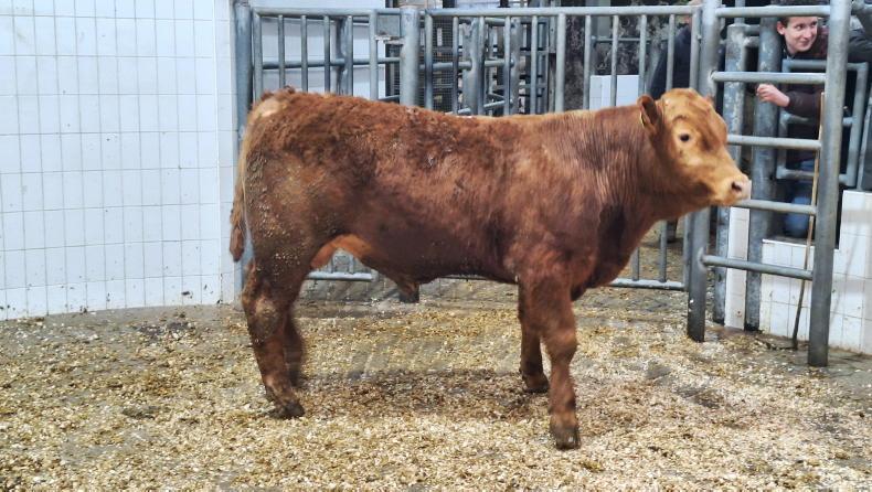 This well-conformed Limousin-cross bull weighing 405kg and born 24/07/2025 sold for €2,300 (€5.68/kg).