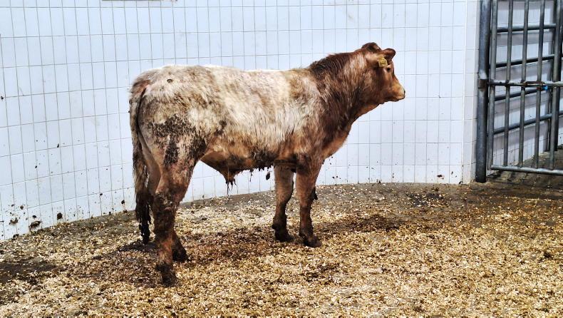 This Charolais-cross heifer weighing 425kg and born 23/03/2025 was bid to €1,720 (€4.05/kg) but went unsold.