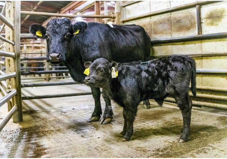 Top price of the night went to Screig Laura, a black short cow born in 2020. She sold with her black bull calf at foot for the top price of €1,800.