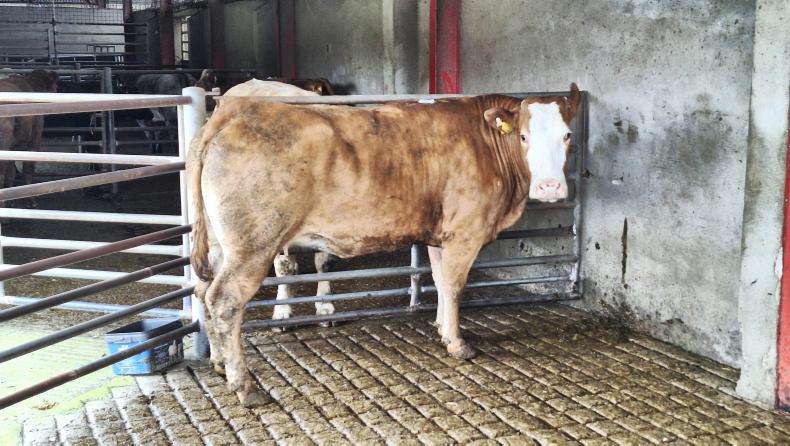 This Limousin-cross cow born 7/7/2016 and weighing 640kg sold for €1,800 (€2.82/kg).