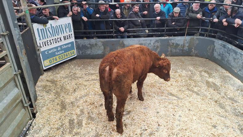 Lighter bulls suitable for feeding on as bulls or castrating and weighing from 300kg to 400kg sold from €4.50/kg to €5/kg on average, with some excellent-quality bulls selling to €5.70/kg.