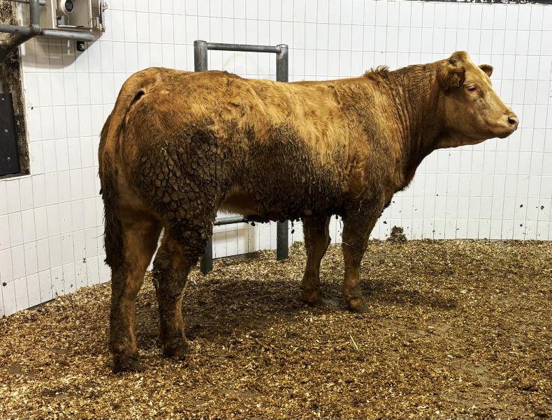 This Limousin-cross first-calving heifer born March 2023 and weighing 705kg sold for €4,100 (€5.81/kg).
